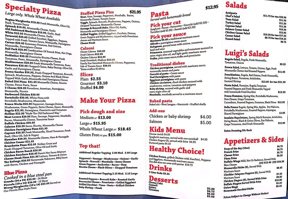 Luigis Pizza Fresca Menu